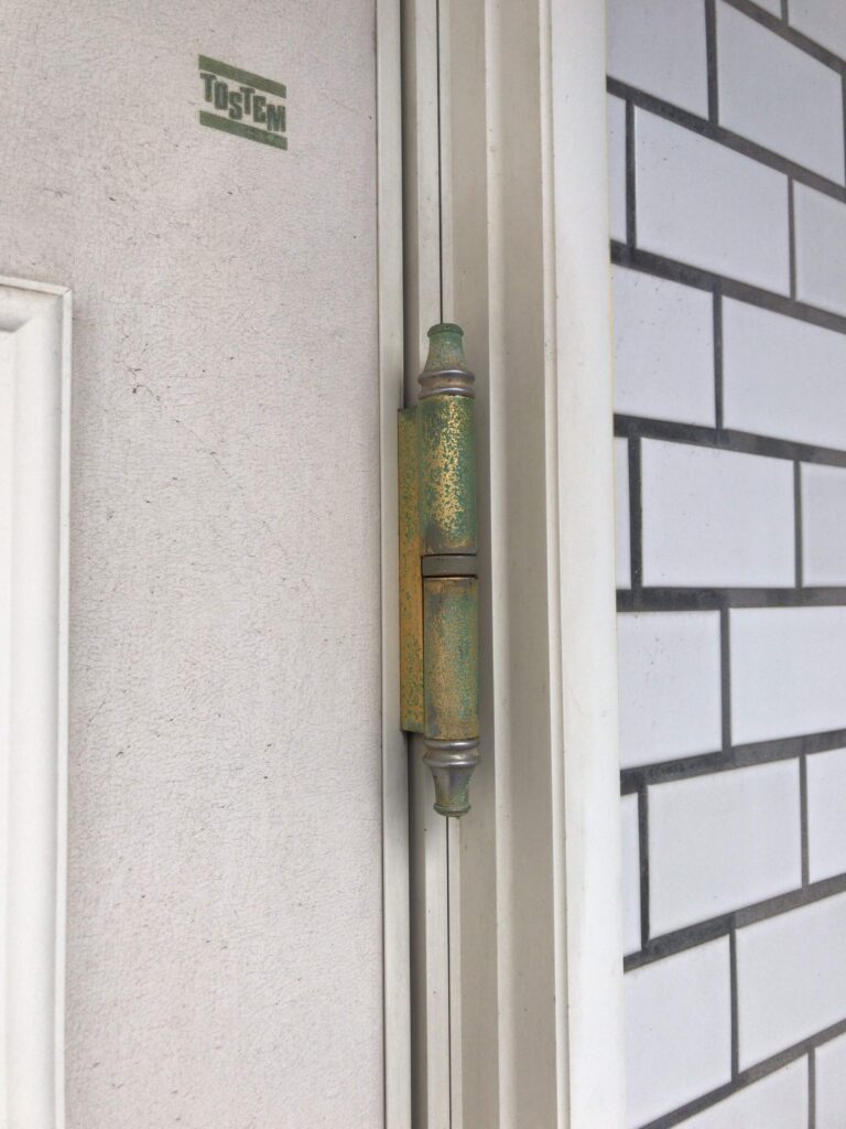 | コメント:玄関ドアチョウバンの補修依頼です 強溶剤を使用したウレタン系塗料の吹き付け作業で綺麗に蘇りました 交換となると玄関ドアを外さねばならず手間がかかります 補修ですめば格安で美しく蘇ります。 |