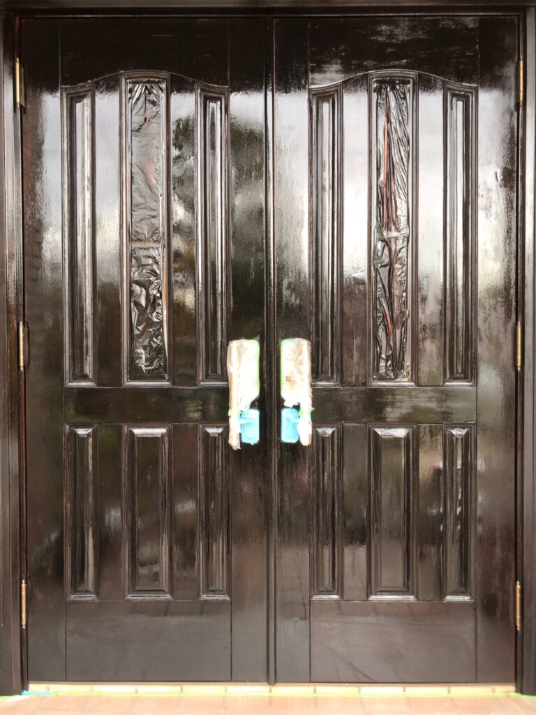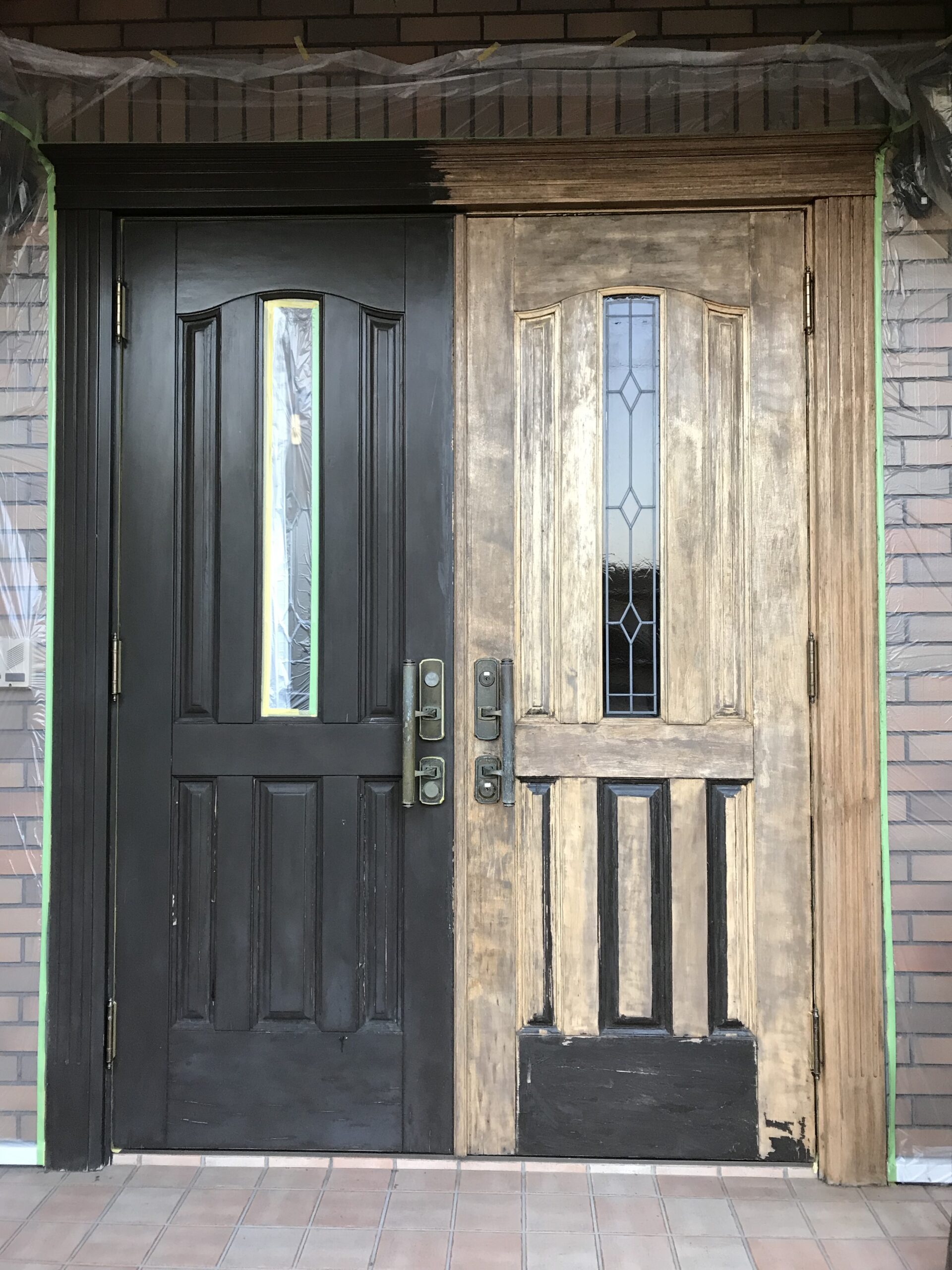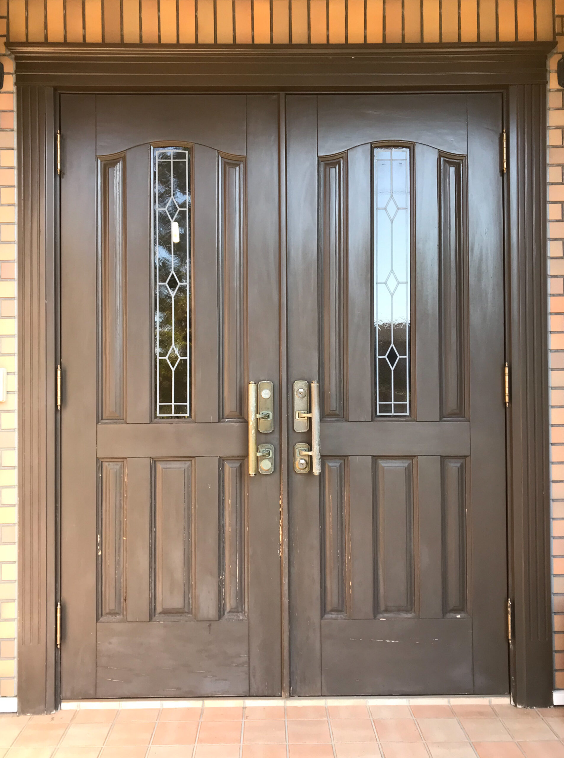 | コメント:愛知県内のと戸建て住宅の玄関ドアの補修です。 高級なドアです、前回塗装業者が塗装したのですが べた塗りをしてしまい、本来の木の風合いが損なわれた状態でした 今回は木の風合いを生かしたスケルトン仕様で施工致します まずは剥離から、下部は木部が毛羽立つほどひどく痛んでおります、 薬剤とサンダーで丹念に剥離してまいります、 かなりの時間と体力を要します、、、 三日かけて剥離が終わり四日目は塗装に入ります、、、 元色に仕上げてまいります、 下塗り1回、中塗り2回、上塗りウレタン2液を二回吹き付けてまいります 途中硬化を待って研磨作業も必要になります。 最終的には艶を抑えた状態での完成となりました 最後の取り付け作業もうまくいきまして完了となりました ご主人様奥様にも喜んでいただきまして帰社となりました とても素晴らしいお客様に毎日のように恵まれまして感謝しきりです、、、 今回も補修で完璧になおりました、ここで直らない場合はドアごと取替え作業となります、材料の手配、職人さんの手配、搬入、施工、多大な費用と時間を要します、 傷補修工事で済めば大幅なコスト削減が実現できます |