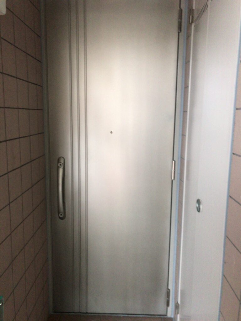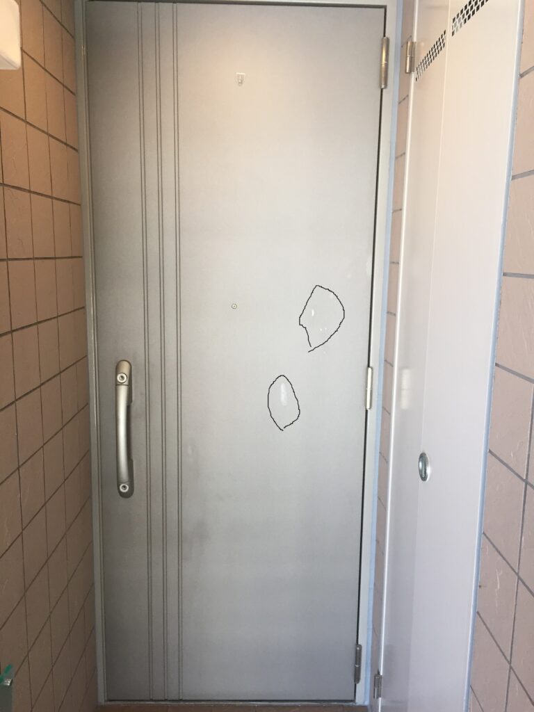 | コメント:分譲マンションの玄関ドア(スチールドア) 2箇所傷がございました ウレタン2液の塗料で現地調色しました パテ込みして面出し下塗りのあと調色した塗料をスプレーガンで吹き付けます 検査もOKでした 半日で終わりました。 |