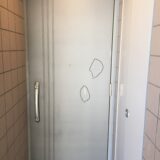 | コメント:賃貸マンションのドアの穴です 裏あてをしてからパテ込み、面出し木目を再生してまいります 毎回、色合わせ、木目書きには苦労します、、、 最後に艶調整します 半日あれば充分直ります! |
