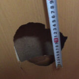 | コメント:最近依頼の多い賃貸物件、ドアの大傷です 作業手順 出来るだけ凹んだ部分を引っ張り出そうと試みましたがだめでした 板を裏あてして接着しポリエステルパテで整形致します 粉が多めに出ますので養生はしっかりと。 面を完全に出します ベースカラーを吹き付け ベースカラーを筆で再現 木目の再現 艶調整にため吹き付け 約2時間程度で直りました スタッフ全員出動のため 私(里見)が施工しました。 |