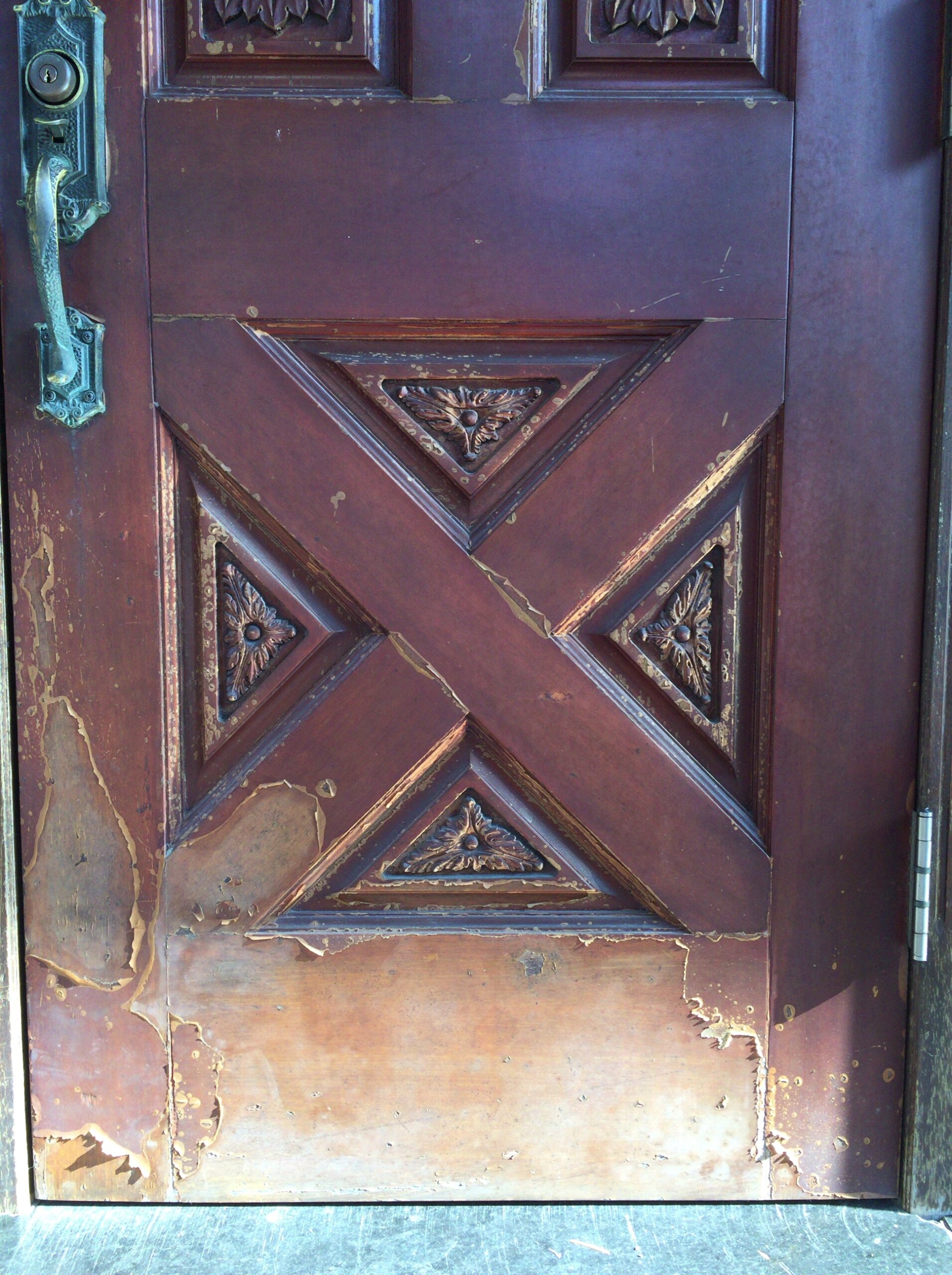 | コメント:稲沢市の会社社長様のお屋敷、玄関ドアの補修です。 重量級の超高級なドアです、塗装業者がさじを投げたほど難しい仕事です まずは剥離から、塗装がかなり剥がれてしまっています、下部は木部が毛羽立つほどひどく痛んでおります、 薬剤とサンダーで丹念に剥離してまいります、 彫刻部分の凹凸の剥離作業がたいへんで、かなりの時間と体力を要します、、、 三日かけて剥離が終わり四日目は塗装に入ります、、、 元色に仕上げてまいります、 ローズ色に仕上げることになりました 下塗り1回、中塗り2回、上塗りウレタン2液を二回吹き付けてまいります 途中硬化を待って研磨作業も必要になります。 気温20度の気温も幸いして早く乾いていきます、 最後の取り付け作業もうまくいきまして完了となりました 優しいご主人様と奥様と四方山話しに花が咲きました、、、 喜んでいただきまして帰社となりました とても素晴らしいお客様に毎日のように恵まれまして感謝しきりです、、、 今回も補修で完璧になおりました、ここで直らない場合はドアごと取替え作業となります、材料の手配、職人さんの手配、搬入、施工、多大な費用(おそらく枠の交換込みで100万円コース)と時間を要します、 傷補修工事で済めば大幅なコスト削減が実現できます |