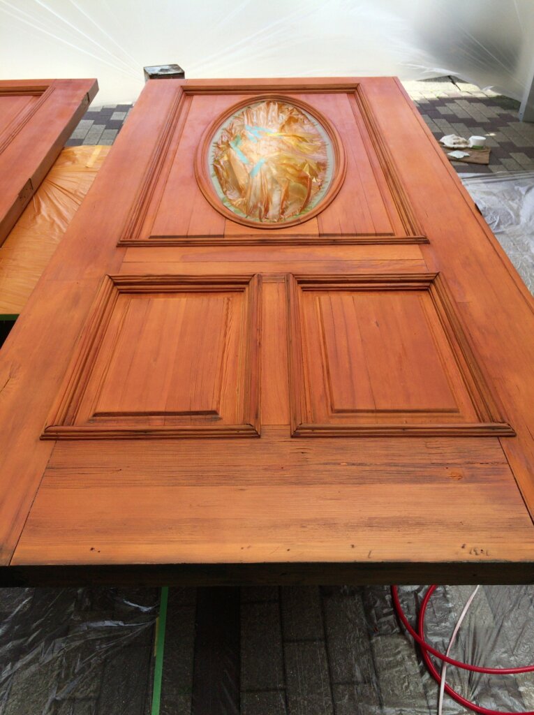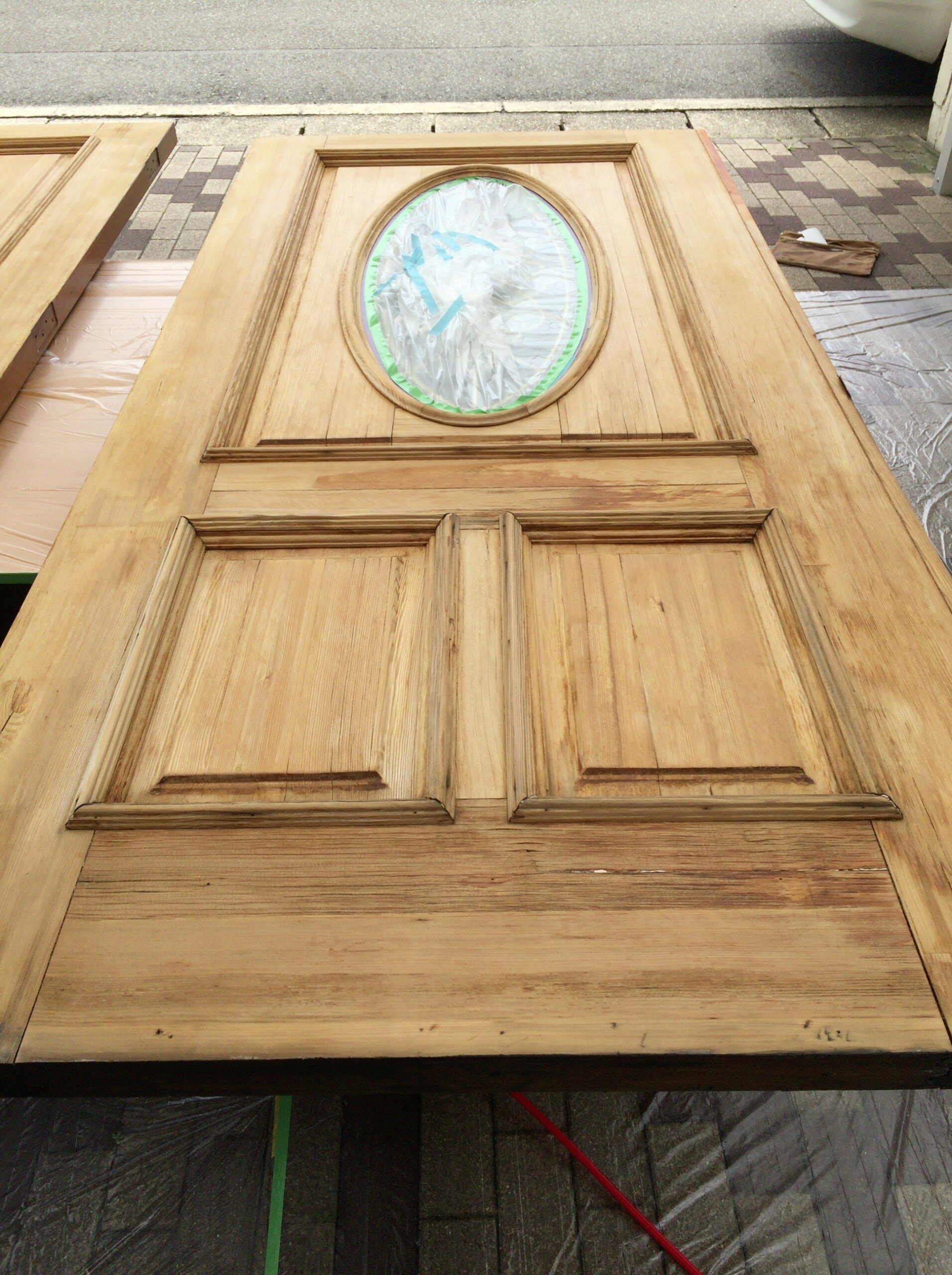 | コメント:まずは剥離から、ほとんど塗料の剥がれがおきていますが完全に剥離致します、 薬剤とサンダーで丹念に剥離してまいります、 凹凸部分の剥離作業がたいへんで、かなりの時間と体力を要します、、、 二日かけて剥離が終わり三日目は塗装に入ります、、、 元色に仕上げる予定です、 痛み具合が激しいため下塗り2回、中塗り2回、上塗りウレタン2液を三回吹き付けてまいります、実に7層仕上げです。 途中硬化を待って研磨作業も必要になります。 気温30度もの暑さも幸いして早く乾いていきます、 最後の取り付け作業もうまくいきまして完了となりました 優しいご主人様とそれにも増してお優しい奥様からお土産までいただきまして帰社となりました とても素晴らしいお客様に毎日のように恵まれまして感謝しきりです、、、、 |
