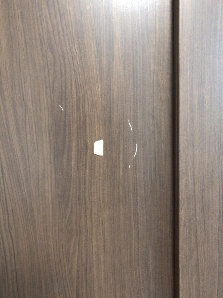 | コメント:賃貸マンションの退去後の建具補修工事です 1 樹脂の充填 2 木目再生 3 艶調整 以上 30分程度の作業です この他に10箇所程度補修して3時間で20000円で綺麗に直りました。 |