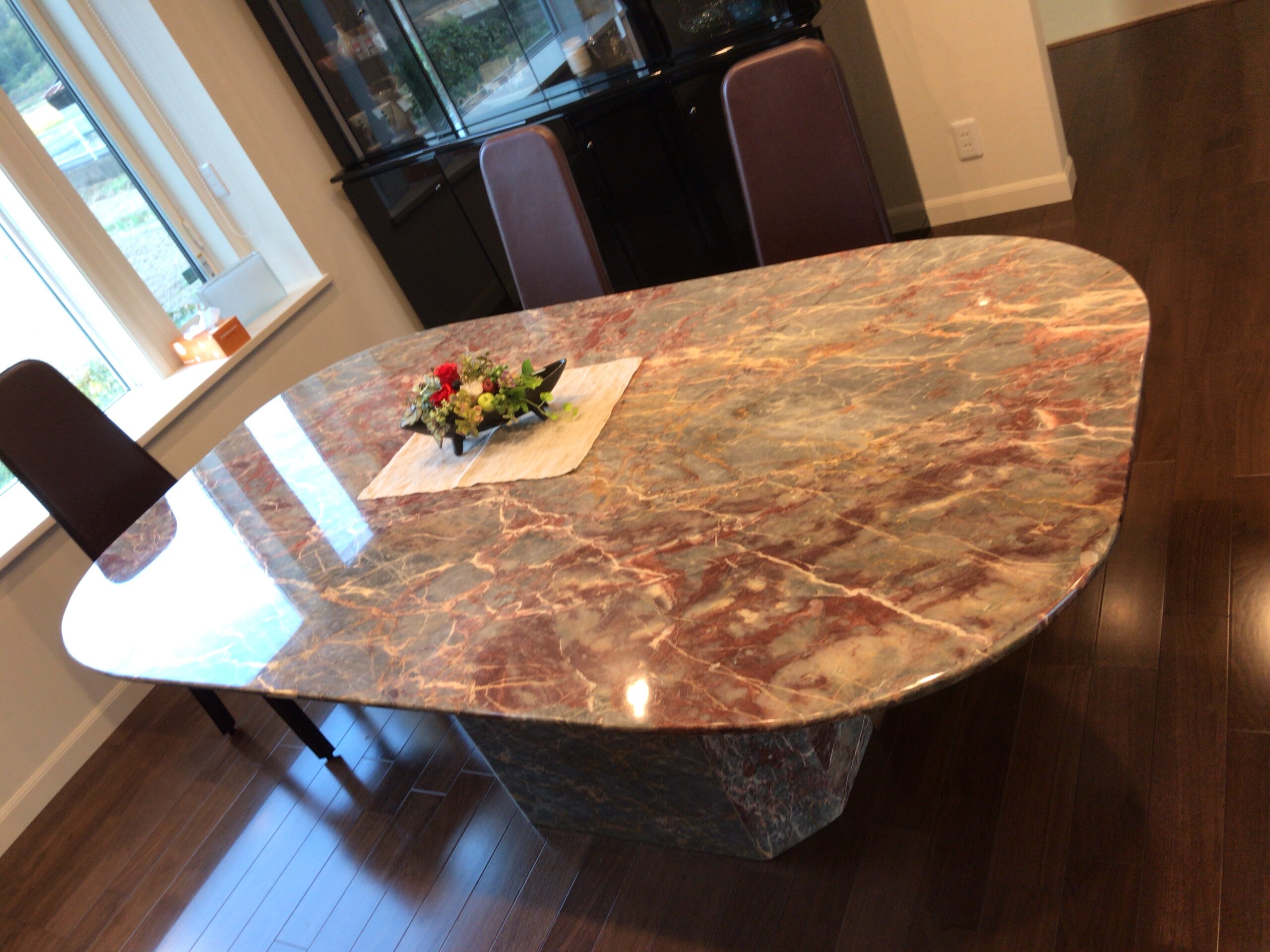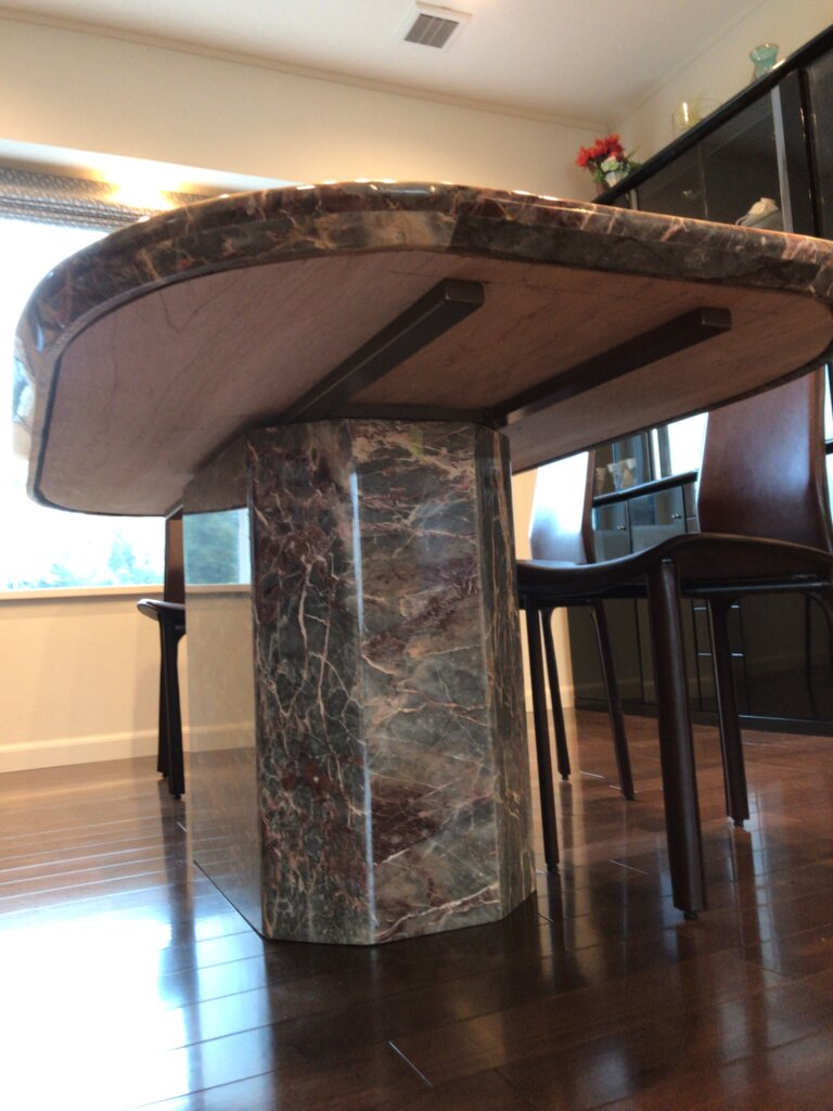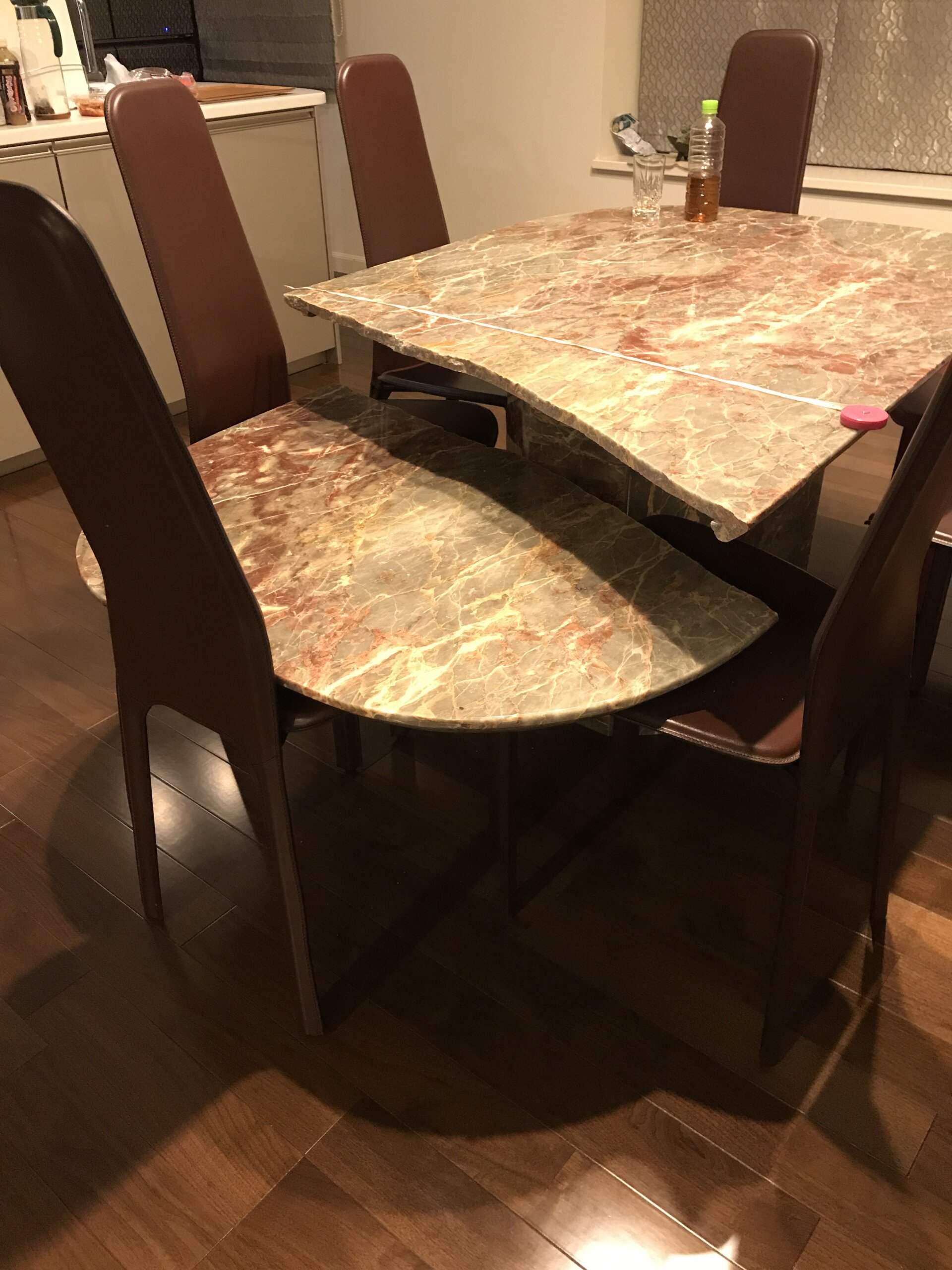 | コメント:とあるお医者様宅の真っ二つに割れてしまった大理石テーブル の補修依頼です 30キロはある重量に耐えるため、里見組(家業)で鉄製アームを製作しました 折れた時に欠けて紛失した部分は充填して柄を筆で再現して 最後は艶調整用のクリアーを吹き付けて完了しました。 |