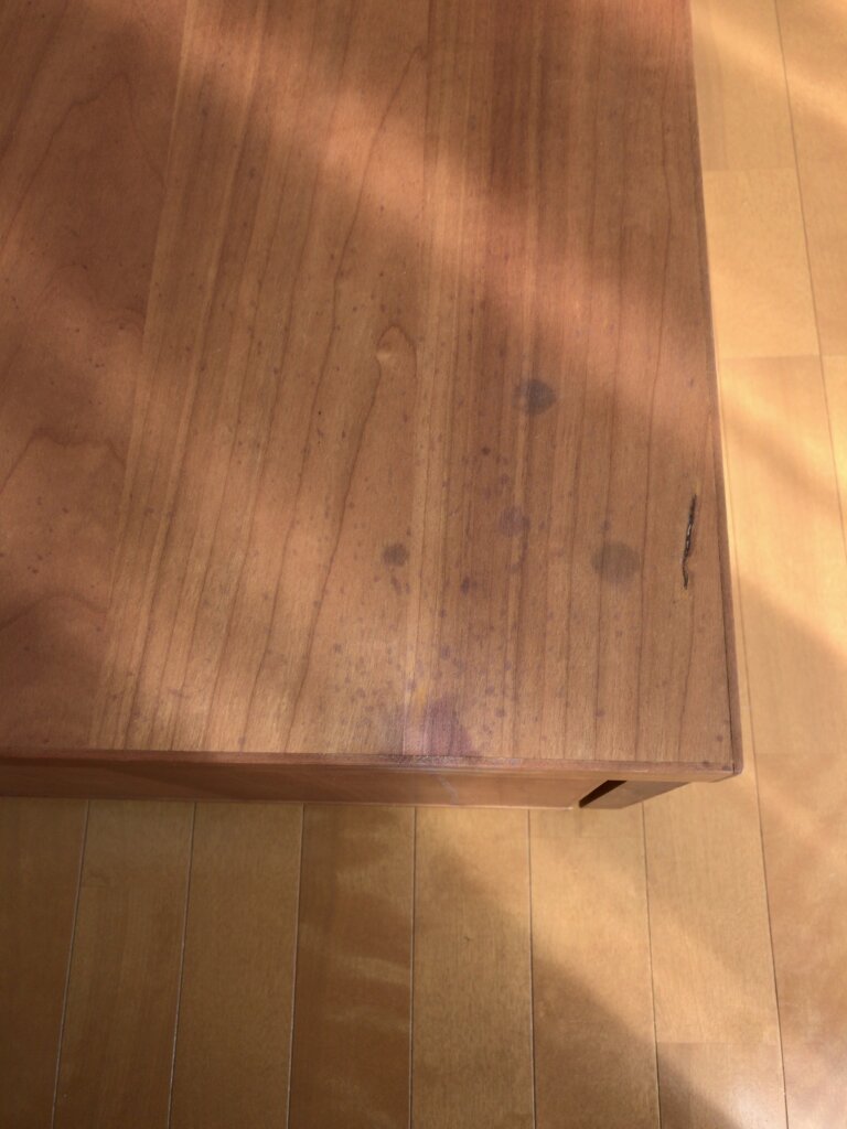 | コメント:業者さんが薬剤を落としてしまい無垢材製の高価なテレビボードが変色してしまいました 作業手順 1 表面を研磨、剥離 2 植物系オイルステインの塗布 3 半乾燥状態で仕上げ 大変神経質なお客様でしたが検査もOKでした ここで直らない場合は買い替えとなります、高価な家具ですから多大な費用と時間を要します、 傷補修工事で済めば大幅なコスト削減が実現できます、 今日もお客様の利益を考え、笑顔を絶やすことなく責任を完遂できました。 |