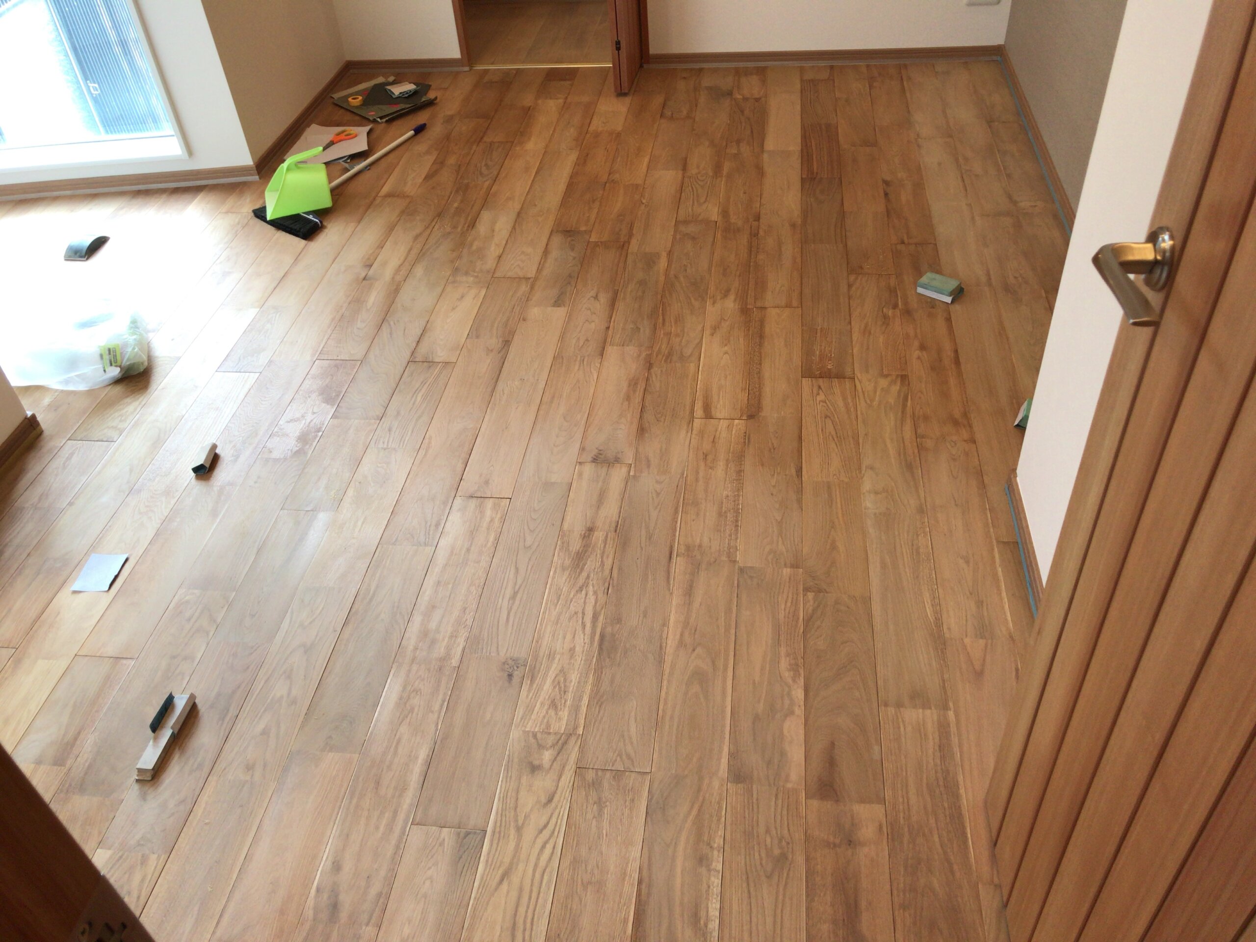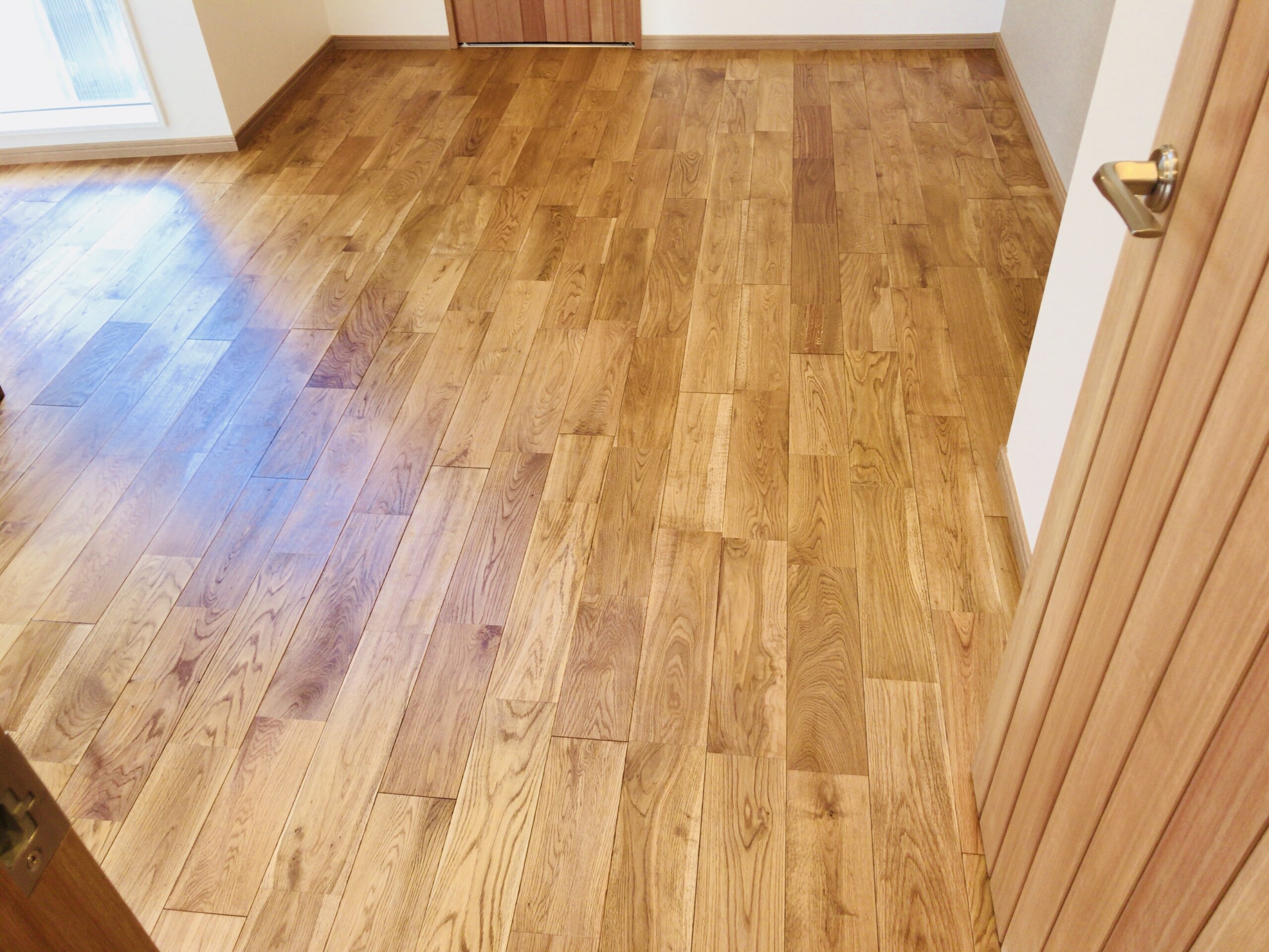 | コメント:今流行のマンションのリノーベーションです 東京のリノベーション会社様からの依頼です 無垢の床材にオイルステインが塗ってあるのですがムラがあり 艶もいまひとつなため弊社で研磨後に「リボス、クリアオイル」 を塗り上げて仕上げました。 ごらんの透り綺麗な仕上がりです 一日で終わります。 |